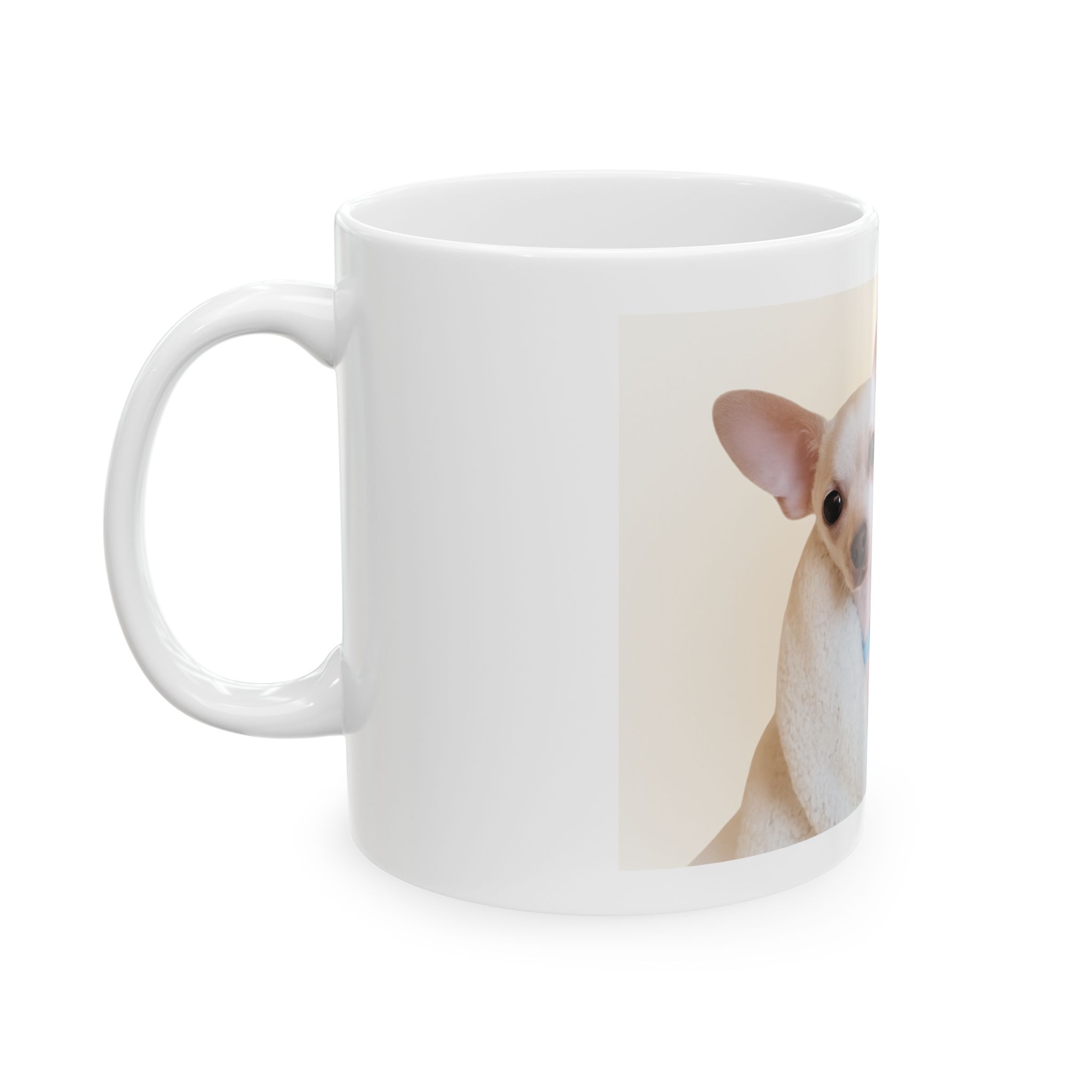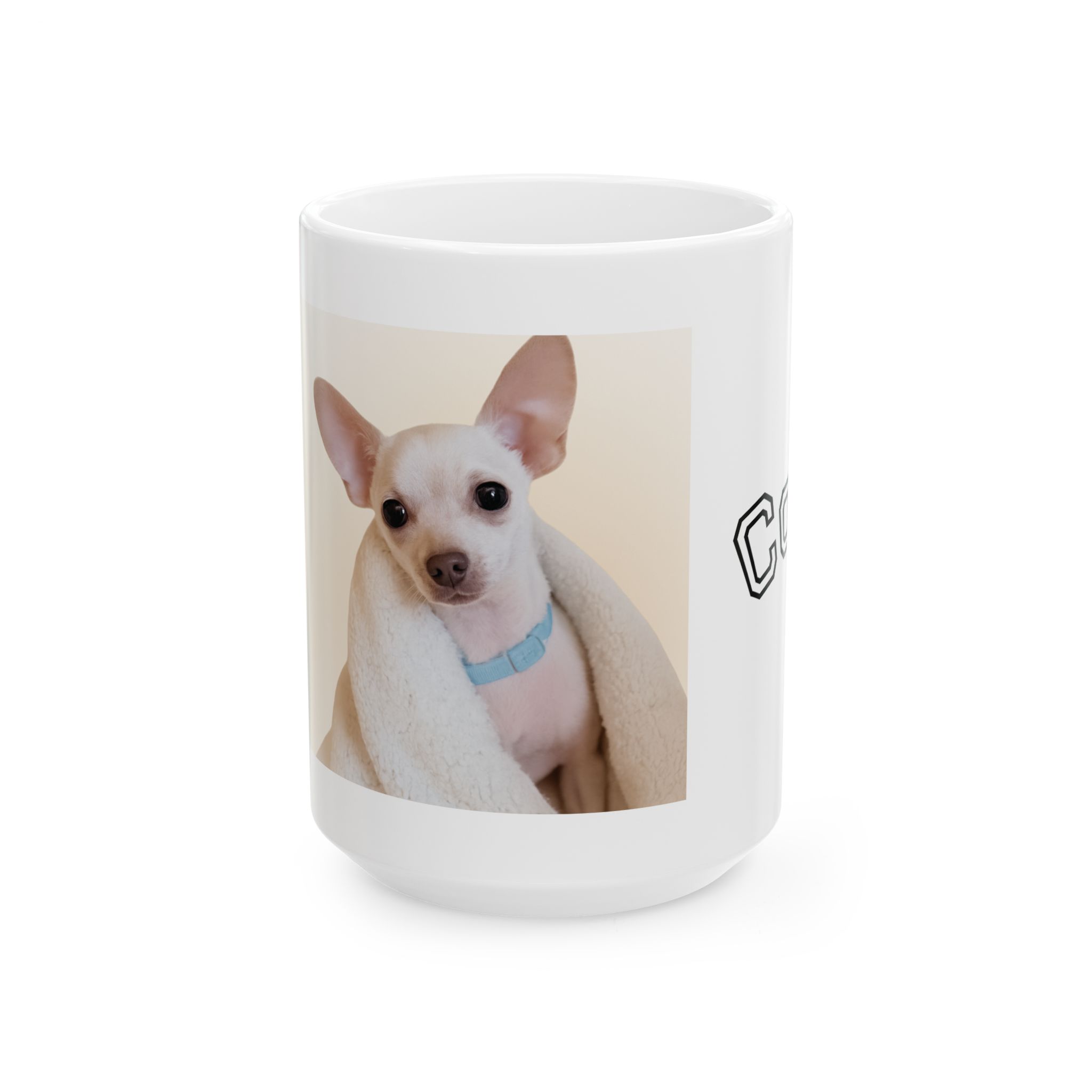 Turn your favorite dog photo into a cozy everyday mug. Upload a clear picture, add your dog’s name, and we’ll print it with care on a durable ceramic mug—perfect for coffee, tea, or hot chocolate.